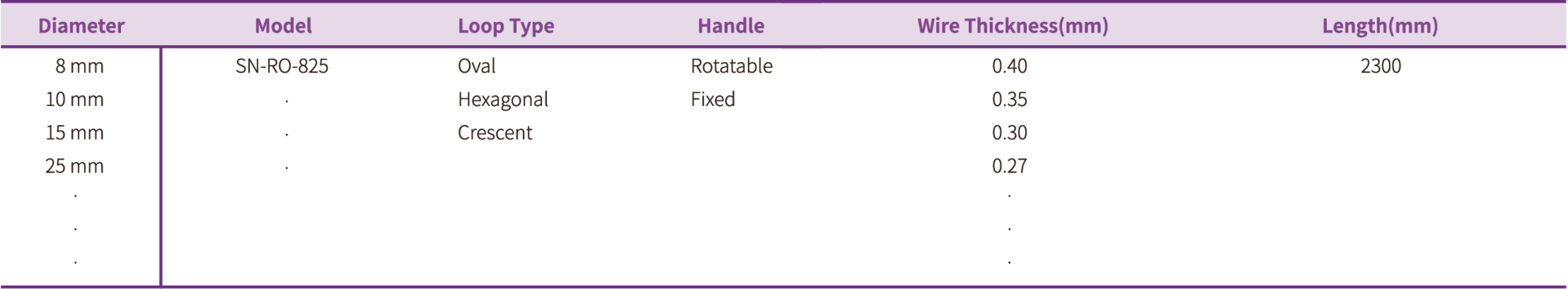 용종의 크기에 따른 다양한 올가미 사이즈 선택가능최대 25mm 크기의 올가미까지 제작 8mm 10mm 15mm 25mm